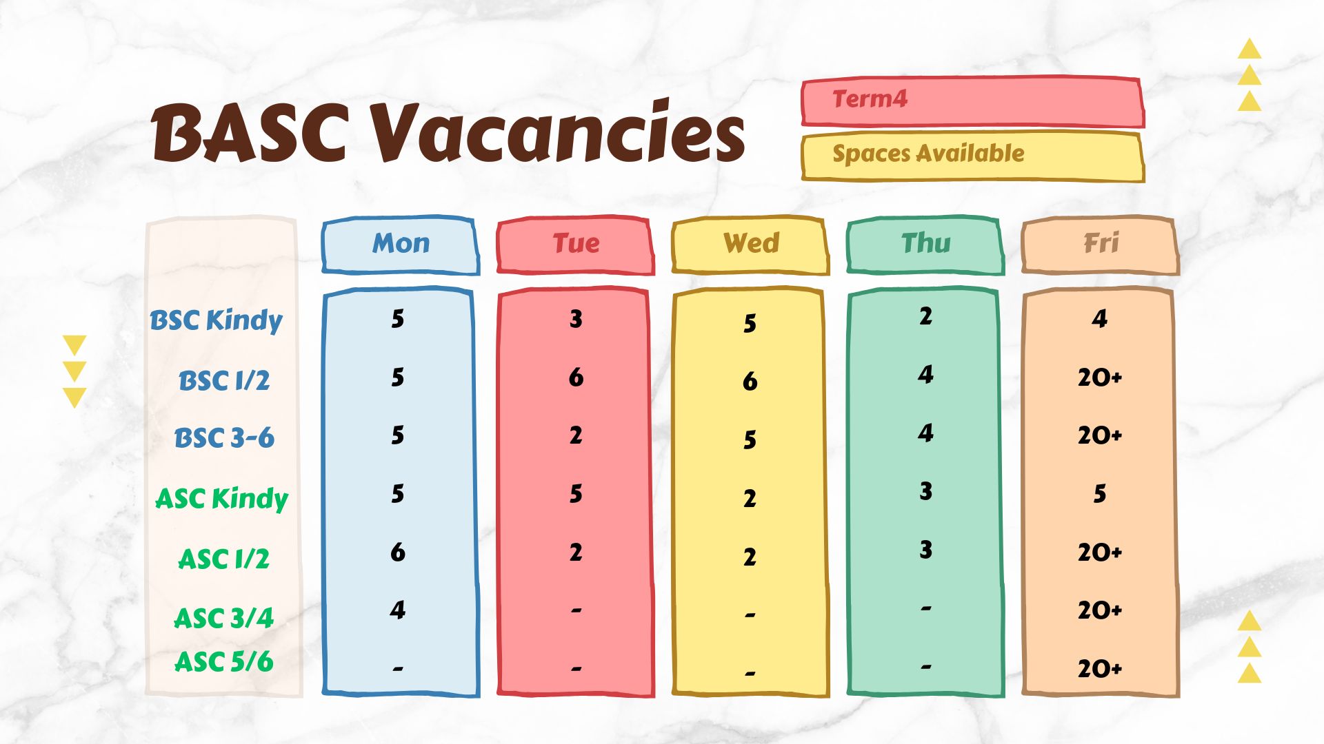 Click below to view our current Term 4 2025 vacant spaces for each grade. Please email admin@mwbasc.com.au to book your child into a spot.